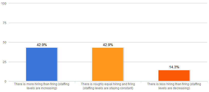 Additionally, two respondents left comments at the end of the survey. One noted “The market seems stable at the moment. We are mildly optimistic about the future.” The other stated “There are significant cuts in the research budgets.” The latter statement allows for some confusion as to whether “research budgets” referred to mean the academic research budgets or the budgets for internal R&D, although use of the plural leads us to believe the respondent most likely meant academic research budgets.